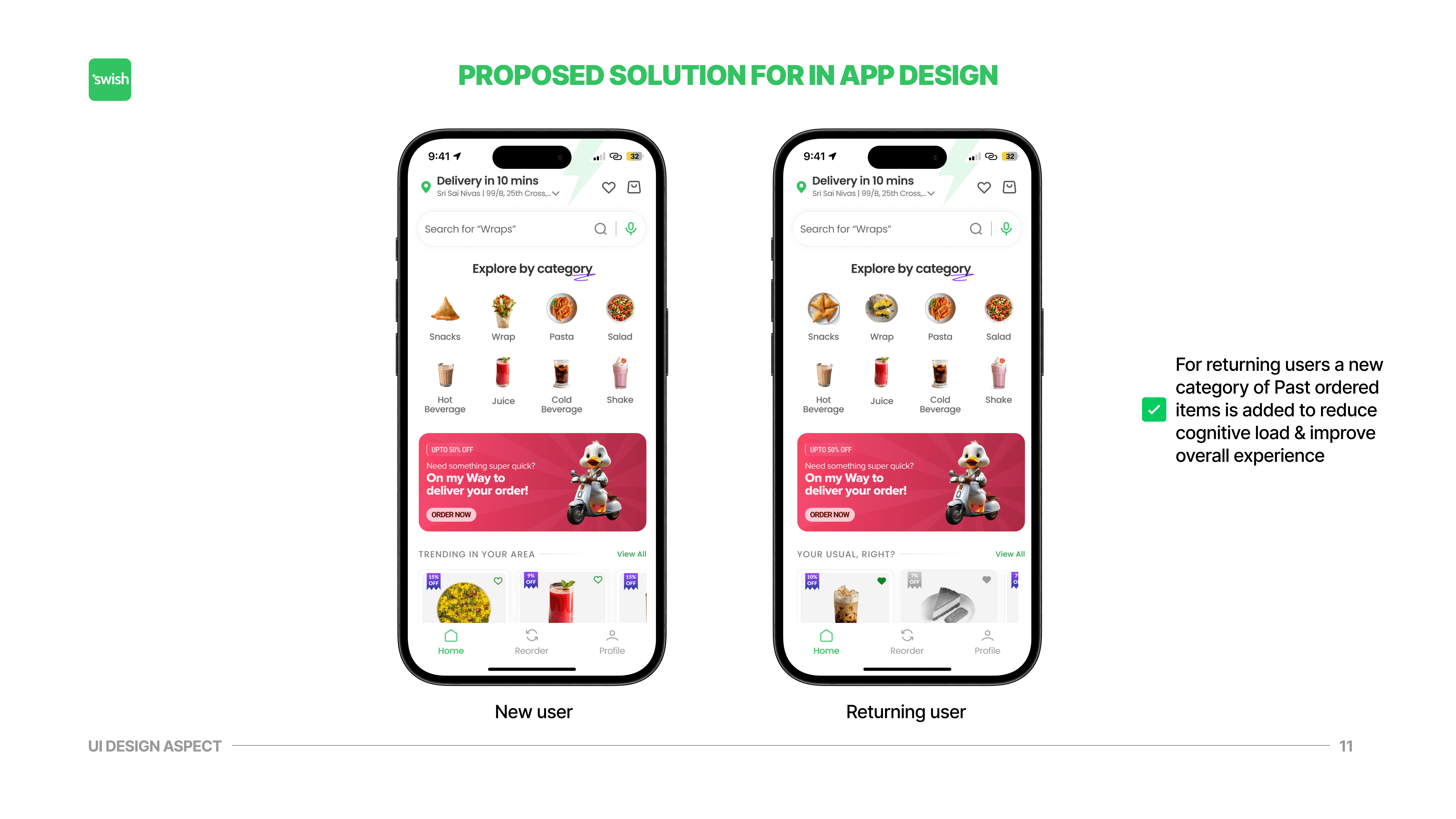Swish is a quick-commerce food delivery app focused on 10 minutes delivery. While speed is its core promise, users still spend several minutes browsing, deciding, and navigating before placing an order creating friction in an otherwise time sensitive experience.